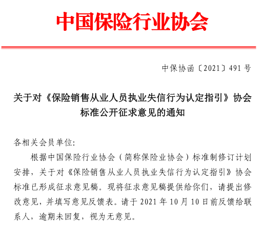 9月16日,《國際金融報》記者從業(yè)內(nèi)獲悉,中國保險行業(yè)協(xié)會已編制《保險銷售從業(yè)人員執(zhí)業(yè)失信行為認定指引》(下稱《指引》),目前正在業(yè)內(nèi)征求意見。