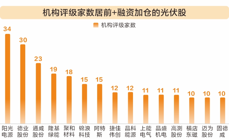 融資資金加倉股普遍獲得機構(gòu)高度關(guān)注,凈買入金額超1億元的22股中,15股獲得10家及以上機構(gòu)關(guān)注,占比超過三分之二,陽光電源、德業(yè)股份、通威股份機構(gòu)關(guān)注家數(shù)居前,分別為34家、30家、23家。