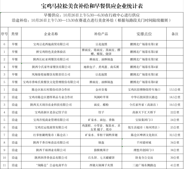 賽事當天清晨5:30至6:30,位于鵬博北廣場的6個愛心早餐供應(yīng)點將準時為參賽選手點亮溫暖燈火。各供應(yīng)點已準備就緒,將提供包括豆花泡饃、搟面皮、地軟包子、煮雞蛋、南瓜粥、油酥鍋盔、醪糟、稀飯、燒餅等在內(nèi)的多種地道寶雞特色早餐。這些熱氣騰騰、營養(yǎng)豐富的早餐,旨在幫助選手們積蓄能量,以最佳狀態(tài)迎接比賽,傳遞出寶雞這座城市友好、周到的人文關(guān)懷。